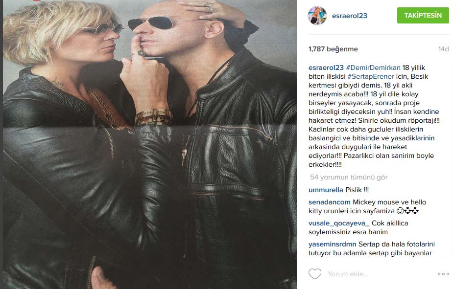 Esra Erol, Demir Demirkan röportajını okuyunca küplere bindi. Demir Demirkan'ın Sertab Erener hakkında söylediklerini beğenmeyen Esra Erol, tepkisini 'Yuh' diyerek dile getirdi. Esra Erol'un bu çıkışına Demet Akalın'dan destek geldi.