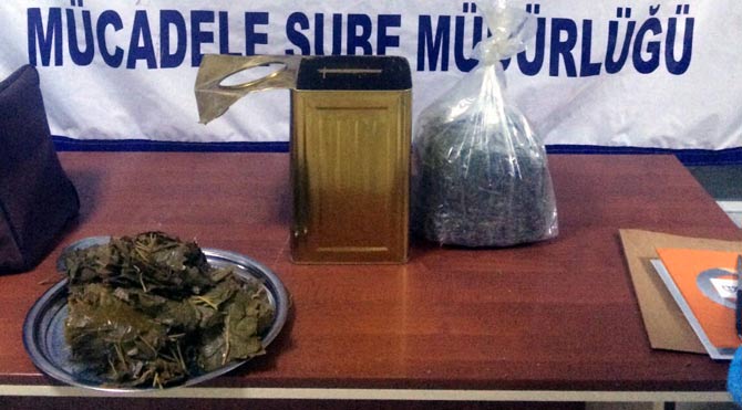 Batman Valiliği'nden yapılan açıklamada, "Şehirlerarası bir otobüsün durdurularak yapılan aramasında, bagajdaki teneke içerisinde bulunan salamura asma yapraklarının arasına gizlenmiş 2 kilo 715 gram esrar maddesi ele geçirildi. Konu ile ilgili olarak yakalanan 1 şüpheli sevk edildiği mahkemece tutuklandı" denildi.
