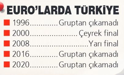 EURO 2000’de çeyrek final görüp Portekiz’e elenen Türkiye; EURO 2008’de ise yarı finale kadar gelmesine rağmen Almanya’ya takıldı. Ay-Yıldızlılar, son 8 kıta turnuvasının 6’sında yer almış olacak.
