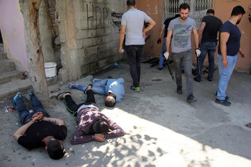 Ancak evin çevresi polisler tarafından kuşatıldığı için Turan E. (26), Ayhan B. (32), Ahmet K. (24), Diyadin B. (34), H.E. (16) ve Tufan Y. (24) yere yatırılıp elleri kelepçelenerek etkisiz hale getirildi.