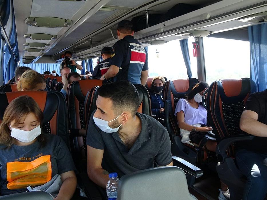 Bugünkü denetimlerde Ankara'dan gelen bir yolcu otobüsünde kimlik kontrolü yapıldı. Kontrolde, yolcular arasındaki G.Ö. isimli kadının, corona virüsü hastasıyla temas ettiği için evde karantina altında olması gerektiği tespit edildi.