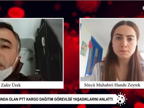 "Şubeler kapatılsın, arkadaşlarımız dönüşümlü görev yapsın" uyarısında bulunmuştu. Corona Gündem yayınına bağlanan PTT dağıtım görevlisi Zafer Ürek, gerekli eldiven, maske ve dezenfektan önlemleri alınsa da büyük tehlike altında olduklarını anlattı. Acil posta dağıtımları dışındaki gönderilerin durdurulup, nöbet sistemi ile çalışmak istediklerini belirten Ürek, ücretli izne çıkmak istediklerini söyledi. Tüm Türkiye’ye ev kal çağrısı yapılırken çalışmak zorunda olan binlerce kargo dağıtım işçisinden sadece biri olan Zafer Ürek’in anlattıkları şöyleydi: