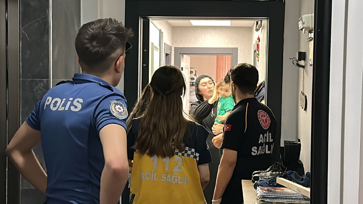 Daire kapısını açamayan annenin ihbarı üzerine adrese polis ve itfaiye ekibi sevk edildi. İtfaiye aracının merdiveniyle dairenin cam balkonuna ulaşan ekipler, pencereyi açarak içeri girdi.