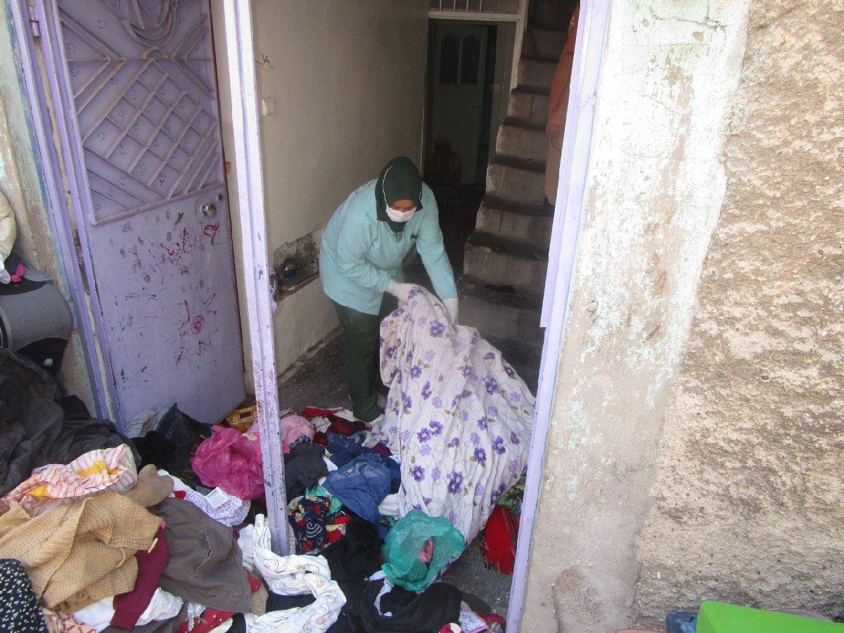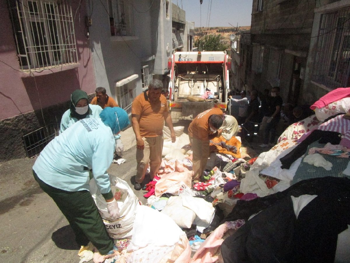 İhbar üzerine mahalleye giden Büyükşehir sosyal inceleme ekipleri, menenjit hastası 39 yaşındaki ortopedik engelli Derya Kaya, eşi ve 2 çocuğuyla çöp ev haline gelen evde yaşadığını tespit etti. İlçe belediye ekiplerinin iş birliğinde, evde bulunan atık giysi, bozuk çürümüş elektronikler, kırık kanepe, kullanılmaz haldeki mutfak gereçleri ve kirli plastik geri dönüşüm eşyaları dışarıya çıkartıldı.