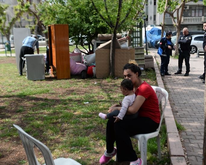 Sabah saatlerinde iş yerlerine gelen esnaf, parktaki eşyaları görünce ailenin yanına gitti. Esnaf, evsiz kaldığını öğrendiği aileye kahvaltı getirip, durumu polise bildirdi. Maddi durumu olmadığı için yeni bir ev tutamadığını anlatan Gündoğdu, "Ev sahibiyle sorun yaşayınca çıkmak zorunda kaldık. Gece eşimin ailesinin evine gittik ancak kardeşi sorun çıkarttı. Yeni bir ev bulacak durumum olmadığı için parka geldik. Çocuğum ve eşimle birlikte rezil olduk" diye konuştu.