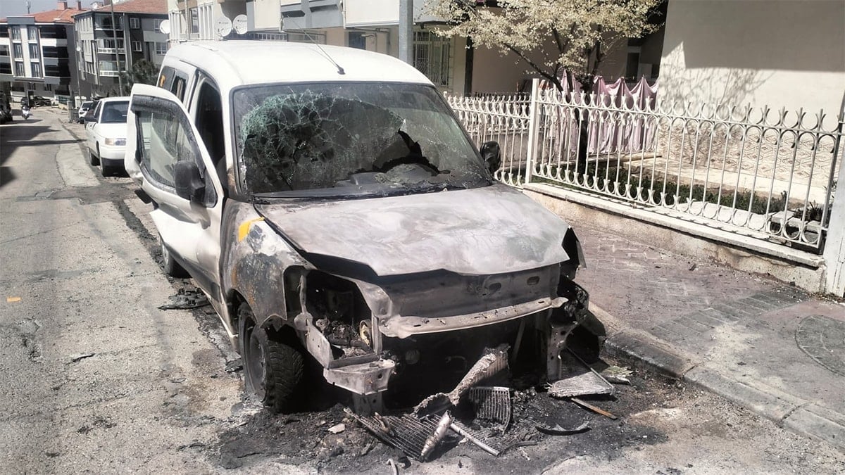 Ankara'da Harun Ş., dün akşam saatlerinde boşanma aşamasındaki eşi Sümeyra Ş.'nin annesinin Mamak'taki evine gitti. Evin önünde eşini ve kayınvalidesini arayıp tehdit mesajları gönderen Harun Ş., cevap alamayınca evin önünde eşinin park halindeki otomobilini benzin döküp ateşe verdi.
