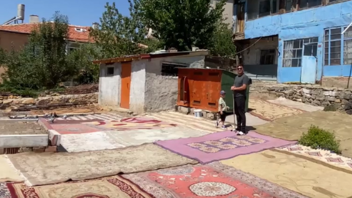 Yozgat'ta yalayan Mehmet Tüzüner, evinin 80 metrekarelik bahçesine 40'a yakın halı serdi. Nedeni ise güvercinleri... Günün stresini güvercinleriyle attığını söyleyen Tüzüner er güvercin ticareti yapmadığını hayvanları çok sevdiğini belirtti.