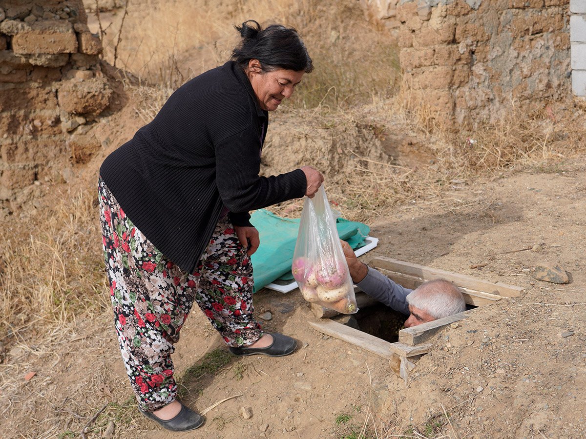 "Havuç, şalgam, patates ekiyoruz. Bunu kasım ayının sonunda buraya dolduruyoruz ve ağzını kapatıyoruz. Ürünleri nisan ayına kadar yiyoruz. Doğallığı hiç bozulmuyor ve çürümüyor. Hatta burada muhafaza ettiğimiz ürünlerimiz daha sağlıklı. Elektrikten de tasarruf etmiş oluyoruz. Mesela bir buzdolabını çalıştıracağımıza bu kuyu da aynı görevi yapıyor. Bizim için bir tasarruf oluyor." (AA)