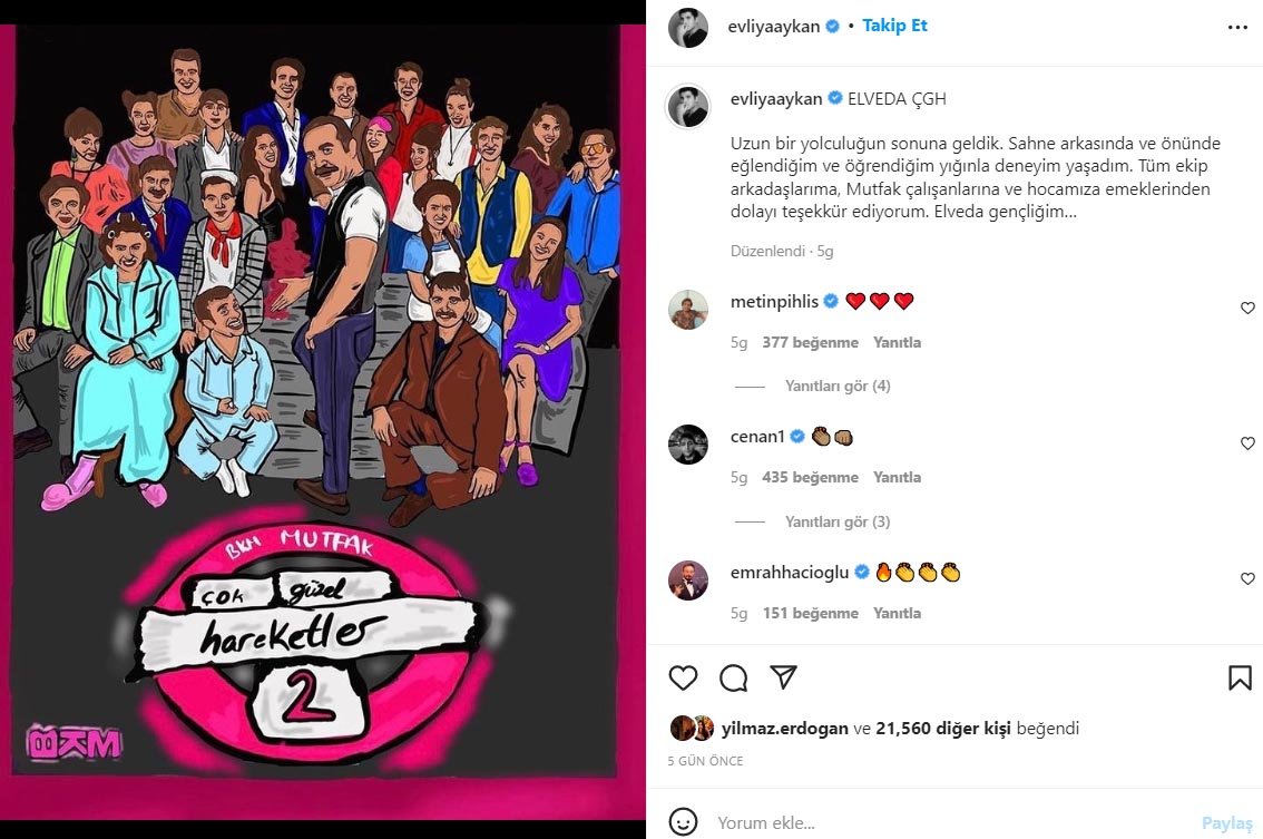 Sosyal medya hesabından yaptığı paylaşımda 'Çok Güzel Hareketler Bunlar 2'nin kadrosundan ayrıldığını duyuran oyuncu Evliya Aykan, Behzat Ç. dizisine dahil oldu.