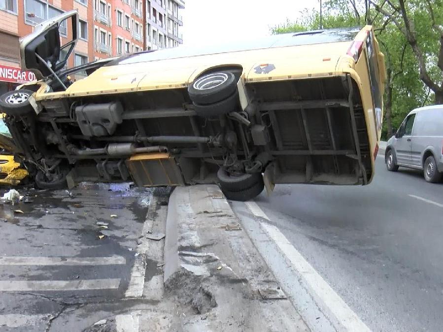 Minibüs, Hamdi Dorullu idaresindeki taksiye çarparak, devrildi. Motosikletli de taksiye çarptı. Çarpmanın etkisiyle motosikletli Mevlüt Öztürk yola savruldu. İhbar üzerine olay yerine çok sayıda ambulans, itfaiye ve polis ekibi sevk edildi. İtfaiye, taksi şoförü Hamdi Dorullu'yu sıkıştığı yerden kurtardı.
