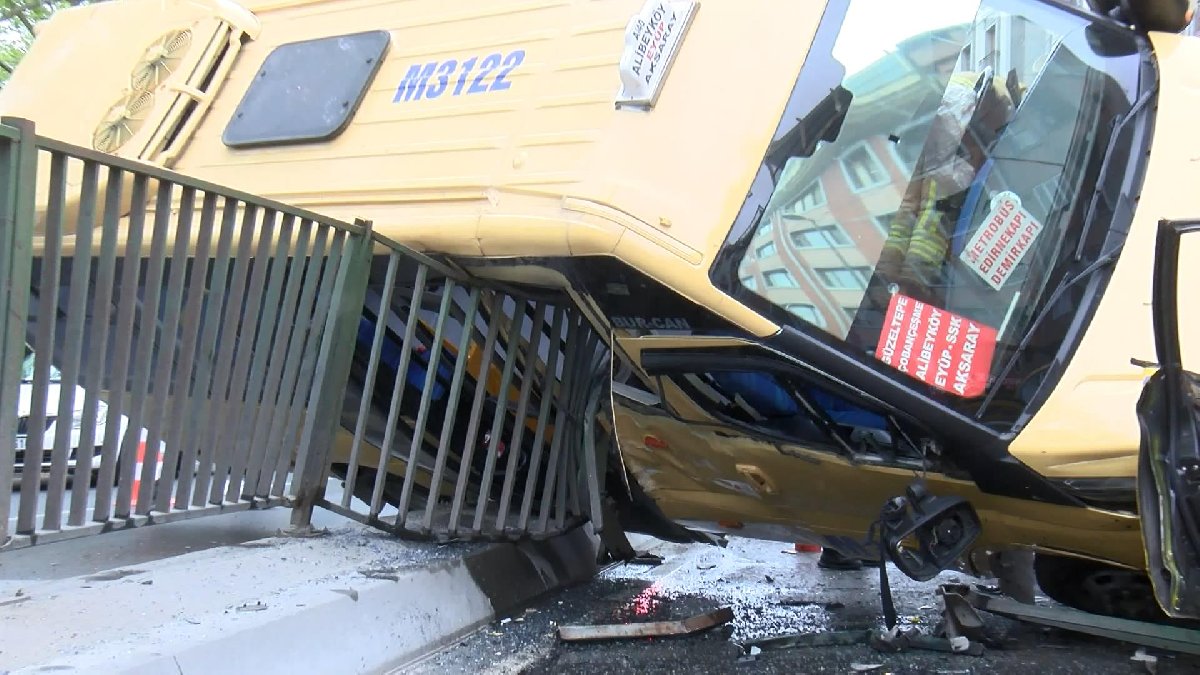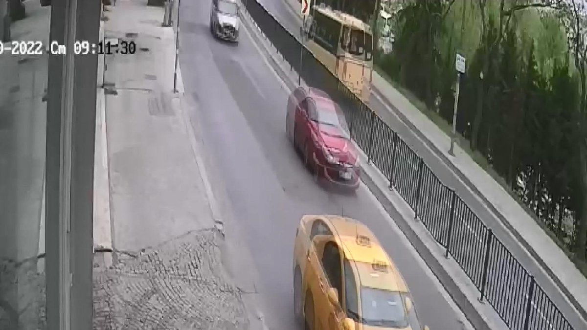 İki farklı kameraya yansıyan kazada minibüsün bariyerlere çıkarak karşı şeride geçmesi görünürken, bir başka güvenlik kamerasında ise, karşı şeride geçen minibüsün taksiye çarpması ve taksinin ardından gelen motosiklet sürücüsünün düşmesi yer alıyor. Görüntülerin devamında çevredekiler olay yerine koşuyor.