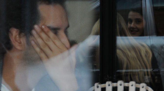 Ferhan Şensoy’un karşısında oturan ve kendisi gibi oyuncu olan arkadaşının flaşlar patladığında yüzünü kapatıp saklanması da akıllar da soru işaretleri bıraktı.