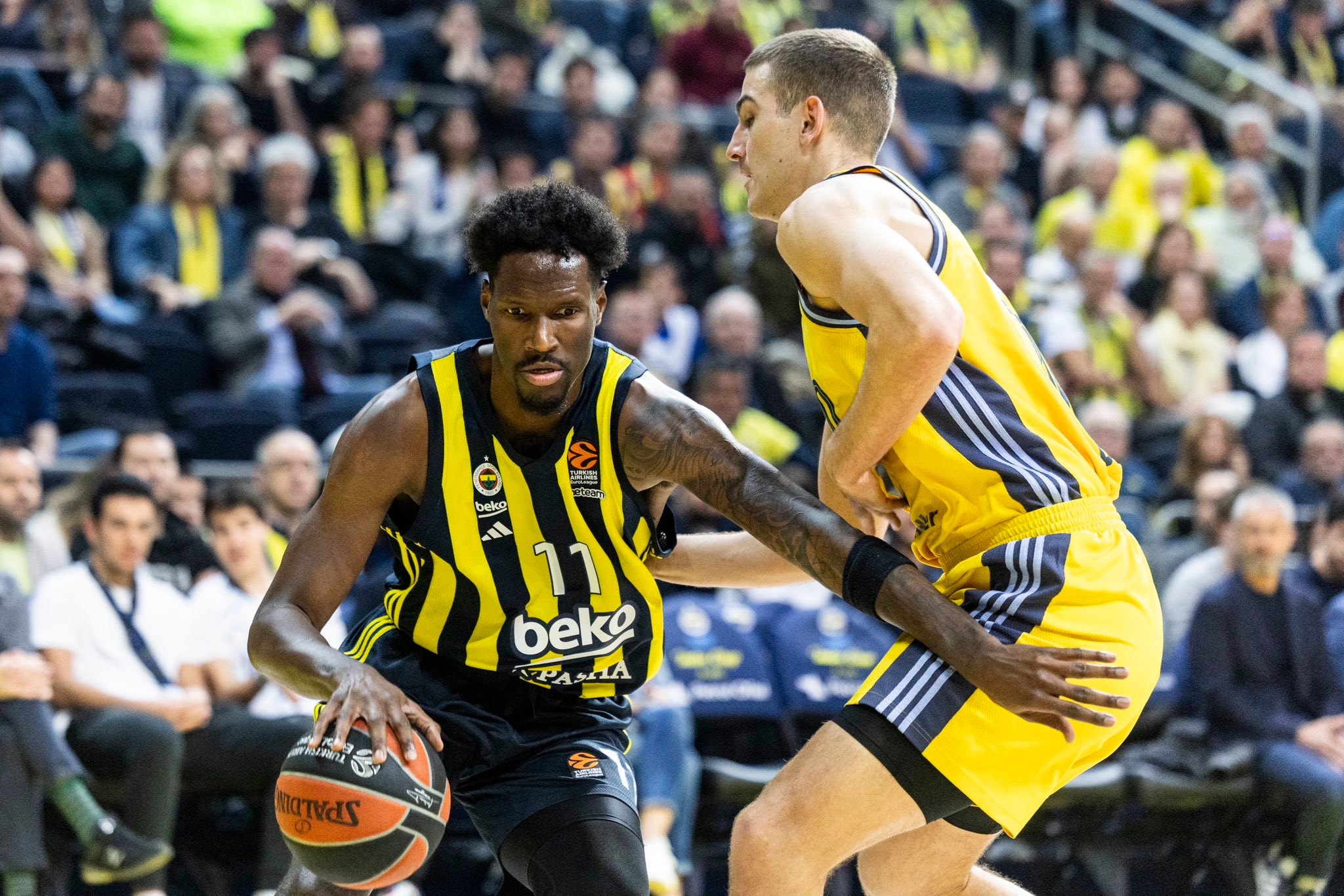 Sarı-lacivertliler, ilk periyotta etkili performans gösteren Sertaç Şanlı'nın 7. dakikadaki 3 sayılık isabetiyle 7-0'lık seri yakaladı (13-7). Konuk ekip ise rakibine pota altından basketlerle cevap vermeye çalıştı ve karşılaşmanın ilk çeyreği 16-11 sona erdi.