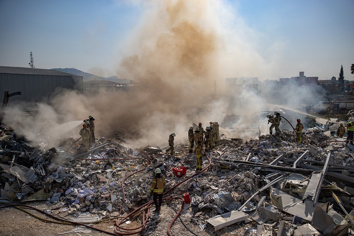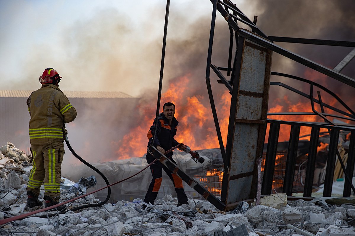Hatay Büyükşehir Belediyesi itfaiyesi ve deprem nedeniyle bölgede bulunan çevre illerden itfaiye ekipleri yangına müdahale etti.