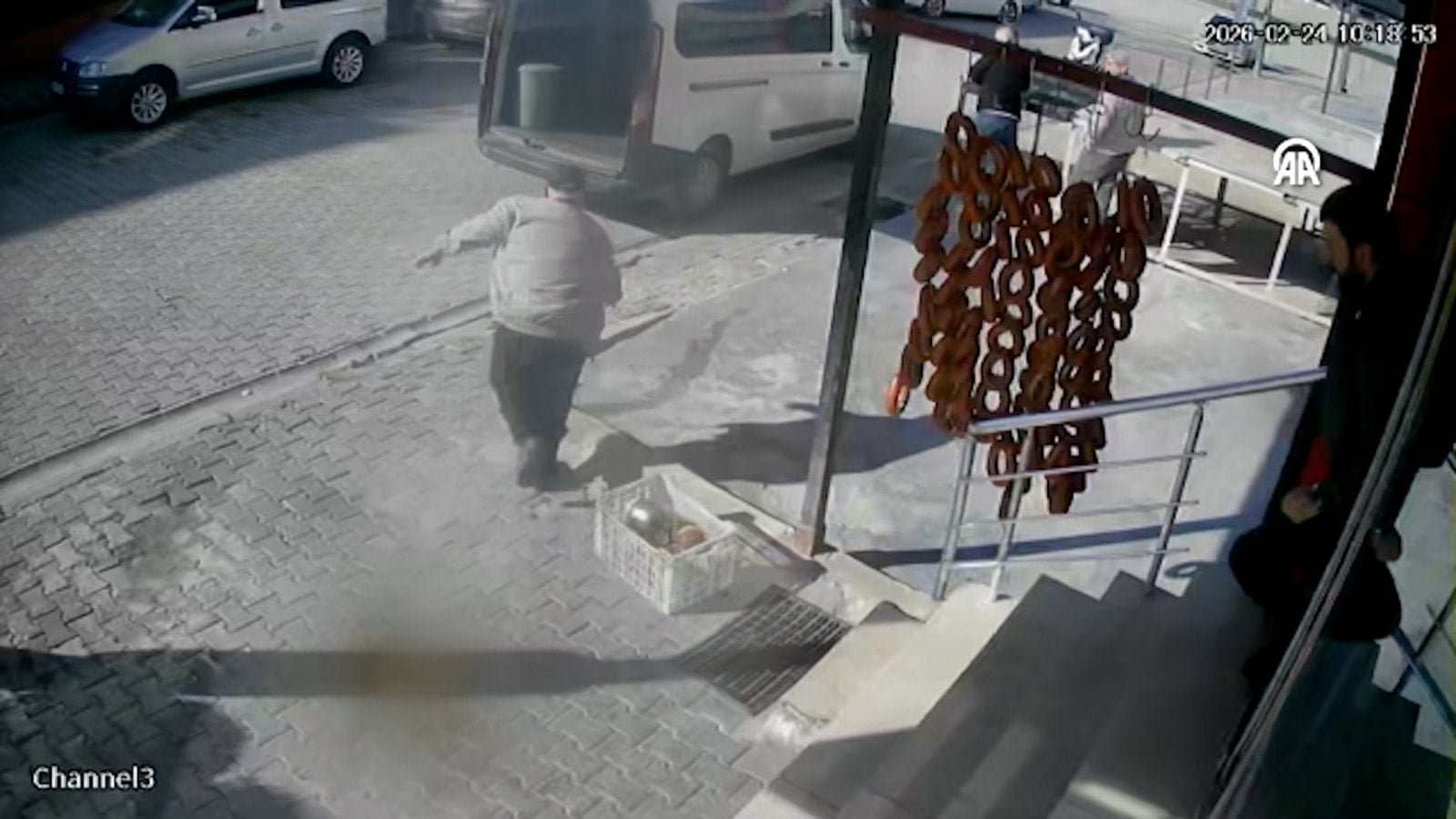 Olayda herhangi bir yaralanma ya da maddi hasar yaşanmazken, yaşananlar iş yerinin güvenlik kamerasınca kaydedildi.