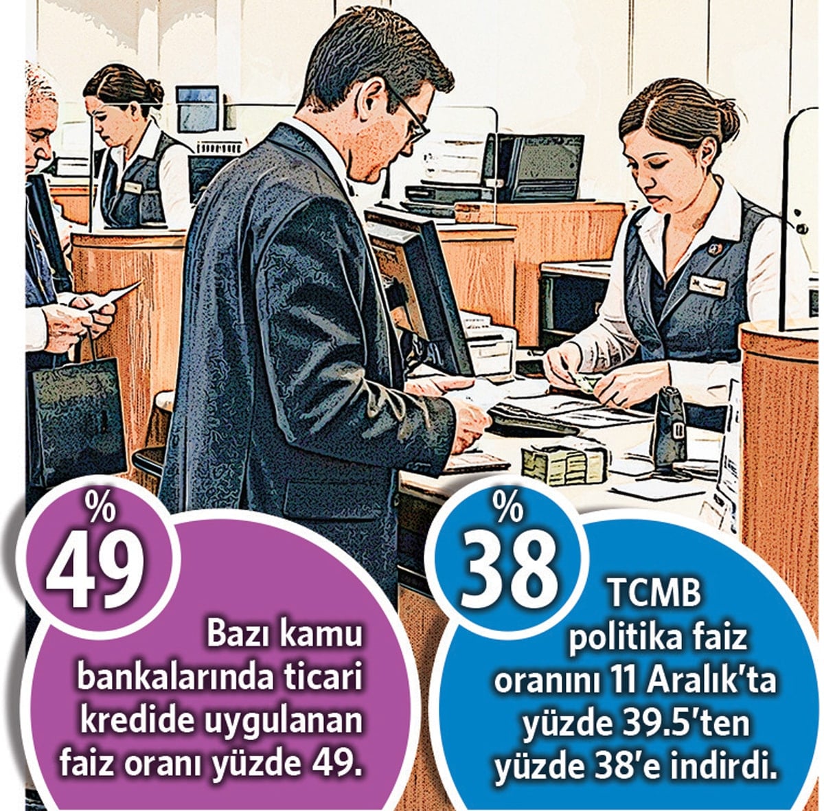 Merkez Bankası’nın 1.5 puanlık faiz indirimi öncesinde bankalar, ortalama TL ticari kredi faizleini yüzde 51.99’dan yüzde 54.57’ye yükseltti.Merkez, üst üste dört faiz indirimiyle yılı kapatmaya hazırlanırken, bu hamleler iş dünyasının beklediği gibi piyasaya yansımadı. Ticari kredide faiz oranlarının yüksek olduğunu, finansmana erişim sıkıntısının giderek derinleştiğini söyleyen iş insanları, politika faizine paralel adımlar istiyor.
