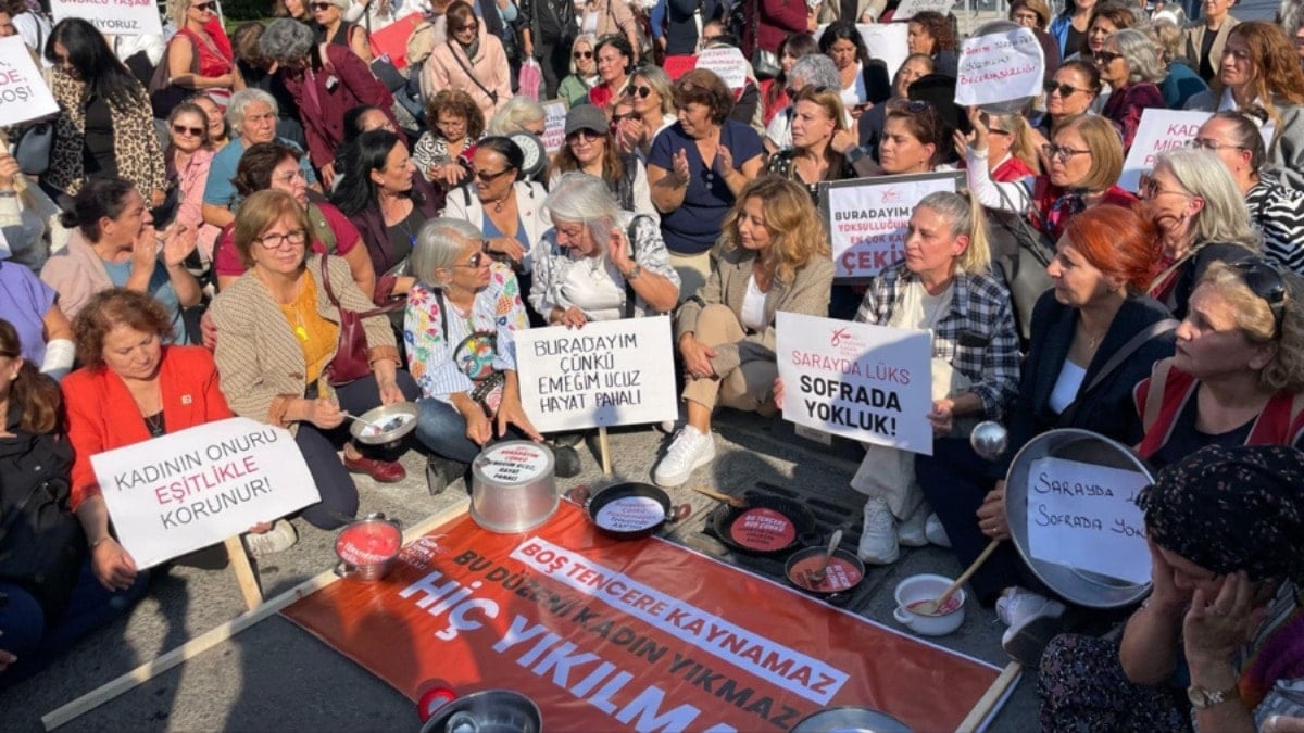 İzmir’deki eylemde de kadınlar, ‘Boş tencere kaynamaz bu düzeni kadın yıkmazsa hiç yıkılmaz,’ yazılı pankartı taşıdı ve ‘Emek var ekmek yok’, ‘Sarayda lüks sofrada yokluk’ sloganları atarak yürüyüş düzenledi. İktidarın ‘Türkiye yüzyılı’ betimlemesini eleştiren CHP İzmir İl Kadın Kolları Başkanı Zahide Kurun, “Bu ülkede artık yoksulluk sadece cebimizde değil, umutlarımızda. Bu tablo bir kader değil, 23 yıldır iktidarda olan AKP’nin iflas etmiş düzeninin sonucu. Bu bir ekonomik kriz değil; iktidarın planlı tercihinin sonucu” diye konuştu. Çorum İl Kadın Kolları Başkanı Özlem Güngör ise “Yoksulluğu bitirmek yerine, yönetmeyi seçtiler” dedi. (ANKA)