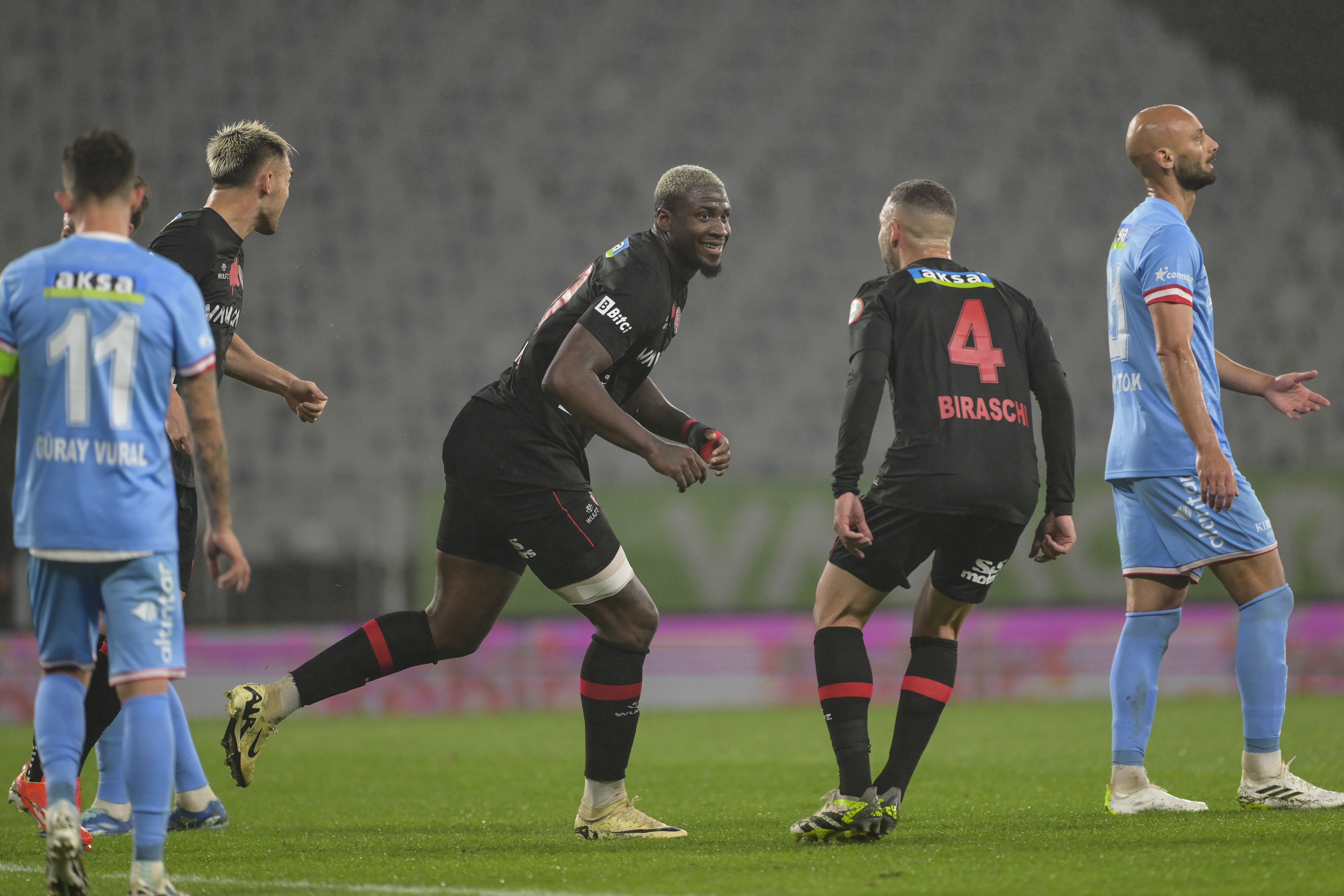 Antalyaspor, ikinci yarının başında Safouri'nin gördüğü kırmızı kartla 10 kişi kaldı. Orta sahadaki bir pozisyonun ardından hakem Kadir Sağlam'ın düdüğünü göstermesine rağmen serbest vuruşu kullanan Safuri, ikinci sarıdan kırmızı kartla oyun dışında kaldı.
