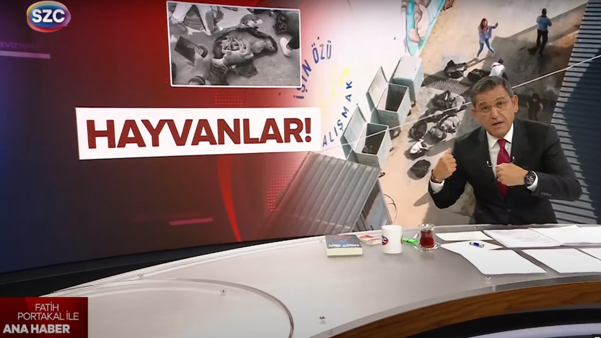 SÖZCÜ TV Ana Haber Sunucusu Fatih Portakal, Kocaeli Gebze'deki hayvan katliamıyla ilgili sert ifadeler kullandı. Yaşananlara tepki gösteren Fatih Portakal, "Vahşi insanlar bunlar. Utanmadan yalan söylüyorlar" dedi.