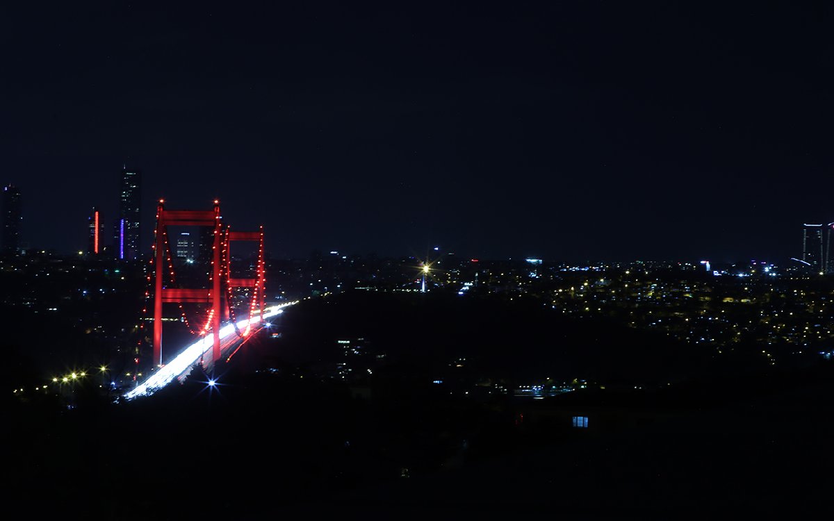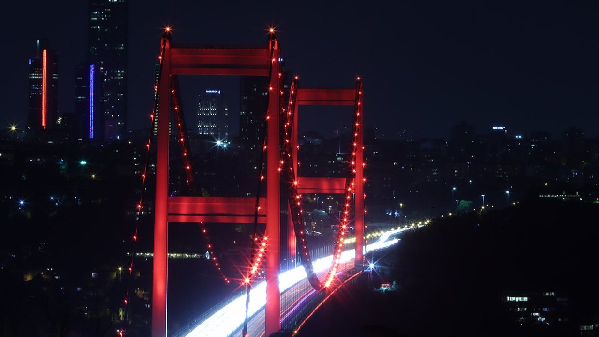 Fatih Sultan Mehmet Köprüsü'nde yapılan aydınlatma gece boyunca sürecek. (AA)