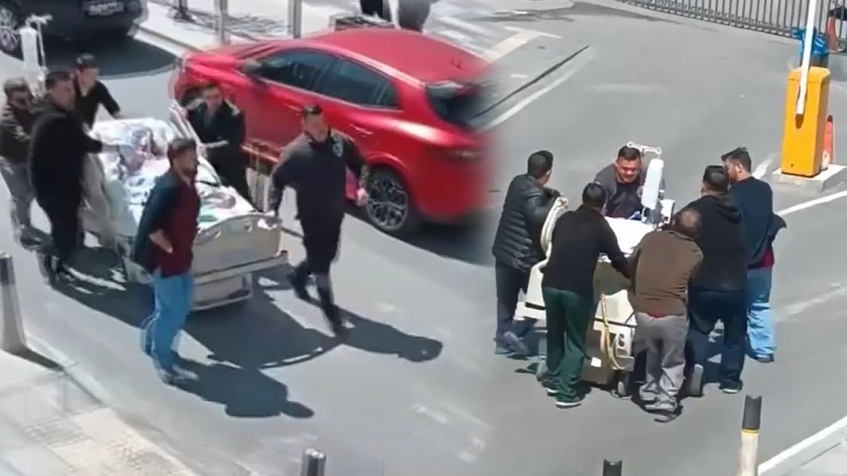 Hastane dışına çıkarılan hasta bu şekilde taşındı.