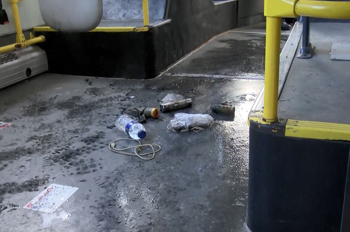 Otobüsten dumanın tahliye edilmesinin ardından yerde meşale ve biber gazı olduğu görüldü. Olay yerine gelen polis ekipleri, otobüsteki incelemesinin ardından şüphelileri yakalamak için çalışma başlattı.
