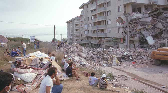 Kocaeli’nin Gölcük İlçesi, 17 Ağustos’taki depremin merkez üssüydü... Felaketin 16. yılında kayıplarını anmaya hazırlanan Gölcük’ün Belediye Başkanı Mehmet Ellibeş, 17 Ağustos depreminde Gölcük’te 6 bin kişinin hayatını kaybettiğini söyledi. Ellibeş, “İnsanları deprem değil binalar öldürür” sözünü hatırlatarak şu örneği verdi: “O günlerde inşaat halinde olan Ford Gölcük Fabrikası’nın hemen kuzeyinde geçen giriş kapısının bulunduğu yerden fay hattı geçiyor. Bu fay hattında kırılma sonucu zeminde iki metrelik çökme oldu. Çöküntü sırasında toprak yarıldı ve nöbet tutan gece bekçisi bu kırığın içine düştü. Depremin yol açtığı ölüm budur. Diğer vatandaşlarımızı ise çürük binalar öldürdü.” (DHA)