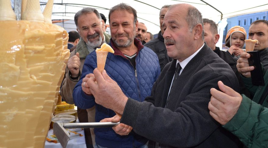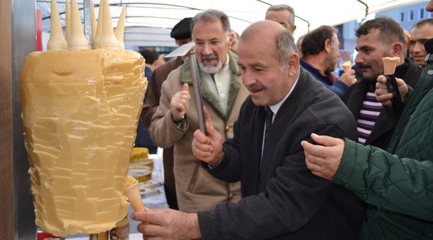Türkiye’nin en çok bal üretilen ili Ordu’da düzenlenen festivalde bal döneri büyük ilgi gördü. Festivale katılanlar döner tezgahından aldıkları balı, dondurma külahlarında afiyetle yediler. Ordu Valiliği, Ordu Büyükşehir Belediyesi ve Ordu Arıcılık Araştırma Enstitüsü’nün ortaklaşa düzenlediği ‘Bal Festivali’nde ‘Bal döneri’ büyük ilgi gördü. Ordu Büyükşehir Belediyesi önündeki ‘Demokrasi Meydanı’nda gerçekleşen festivalde Ordu ve Trabzon’un değişik ilçelerinden onlarca bal üreticisi stant kurdu. Festivalde en büyük ilgiyi ‘bal döneri’ gördü. Hiçbir katkı maddesi kullanılmadan üretilen çiçek balının 4 ay bekletilmesiyle oluşturulan donmuş balı döner tezgahında görenler şaşkınlığını gizleyemedi. Trabzonlu bal üreticisi Sacid Somun, çekiçle kestiği bal dönerini dondurma külahı ile festivale katılanlara ikram etti. Dondurma külahlarında bal yiyen vatandaşlar, balı ilk kez döner tezgahında dondurma külahlarında yalayarak yemenin şaşkınlığını yaşadılar.