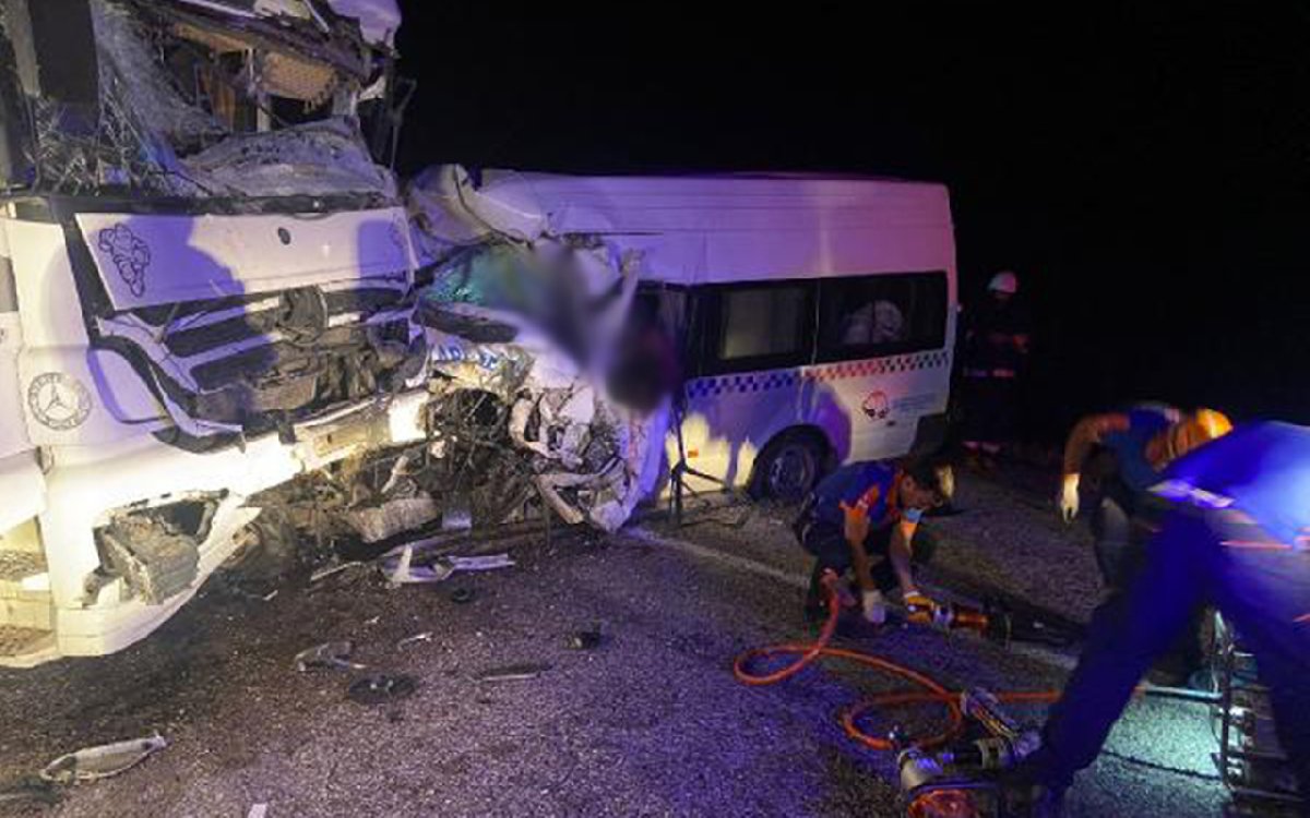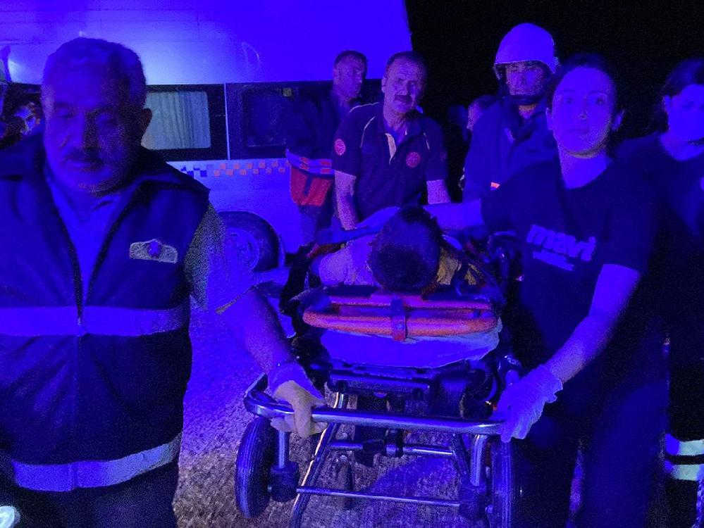 Can pazarının yaşandığı kaza yerine gelen AFAD ve itfaiye ekipleri, uzun uğraşlar sonucu minibüste sıkışanları çıkarttı.