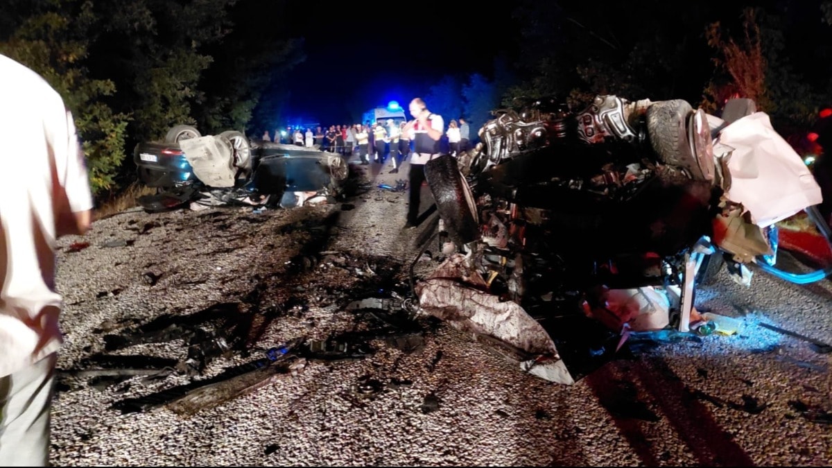 Çınarcık köyü yakınlarındaki Davutköy sapağında dün gece saatlerinde 22 ACR 179 plakalı otomobilin karşı yönden gelen 10 ATF 494 plakalı otomobille çarpıştığı kazada hayatını kaybedenlerin cenazeleri bulundukları yerden itfaiye ve sağlık ekiplerinin çalışmasıyla çıkarıldı.
