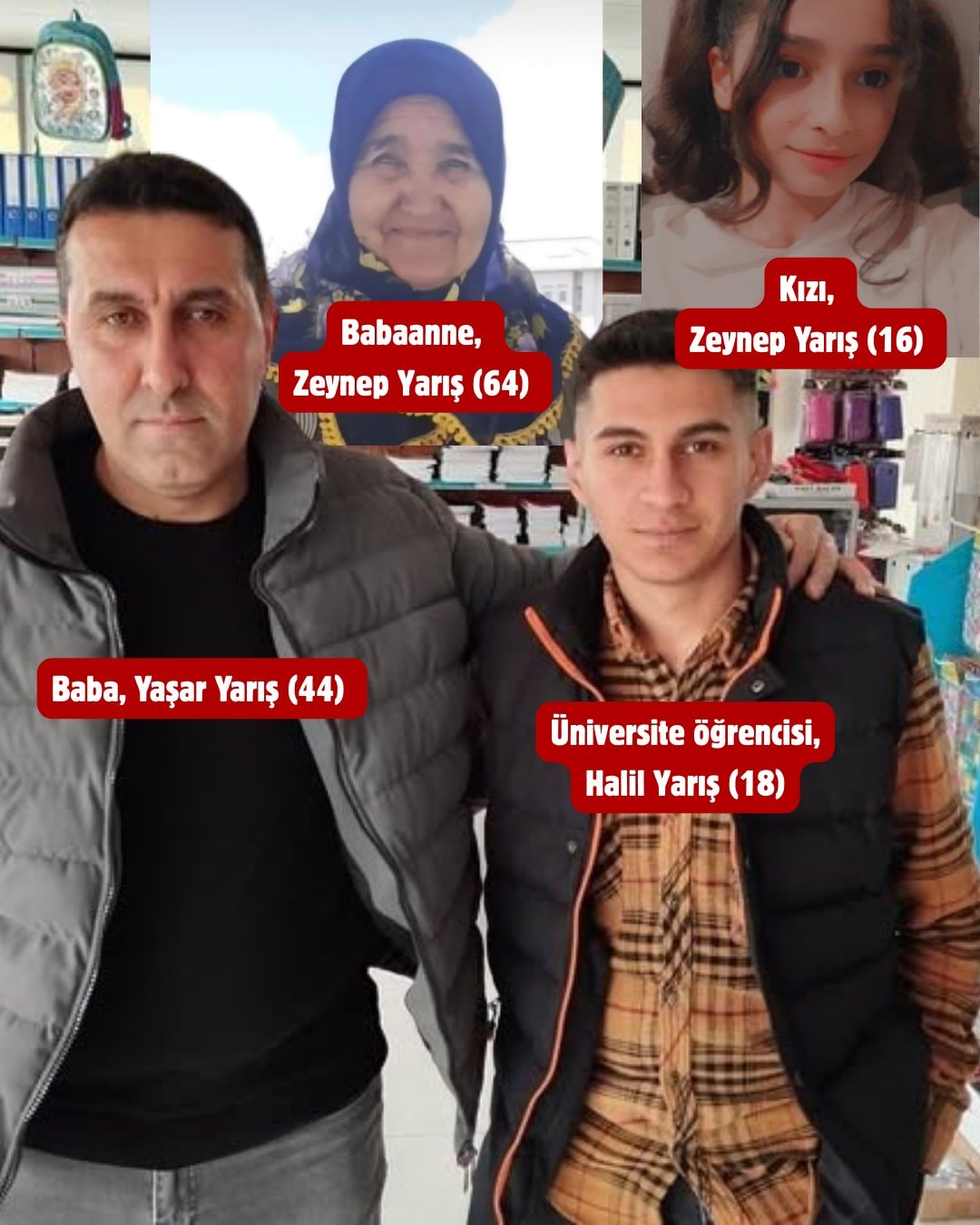 Yangın itfaiye ekiplerince söndürülürken, yapılan kontrolde otomobilde sıkışan sürücü Yaşar Yarış ile aynı otomobilde bulunan babaanne Zeynep Yarış ve torunu 16 yaşındaki Zeynep Yarış’ın yanarak yaşamını yitirdiği, üniversite kaydına giden Halil Yarış'ın ise (18) yaralandığı belirlendi.