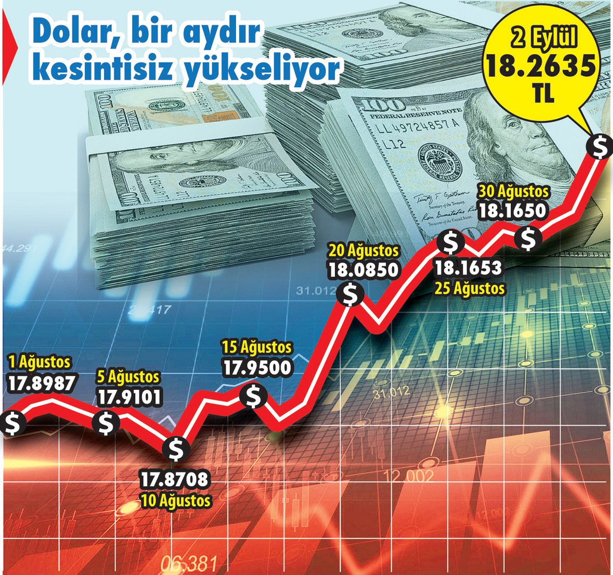 Fed’nin faiz artırımına tam gaz devam edeceğine yönelik kaygılar küresel tahvil ve hisse senedi piyasalarında ağır bir baskı oluşturuyor. Doların küresel ölçekte güç kazanmasından en büyük darbeyi ise aralarında Türkiye’nin de olduğu gelişen ülke para birimleri alıyor. Dolar dün 18.2635 liraya kadar yükselerek 2022’nin zirvesini test etti. Dolar günü18.2210 liradan tamamladı. Dolar son olarak 21 Aralıkta yaşanan kur şoku ile 18.3674 liraya kadar tırmanmıştı. 18.2712 liraya gören Euro ise18.2250 liradan günü tamamladı.