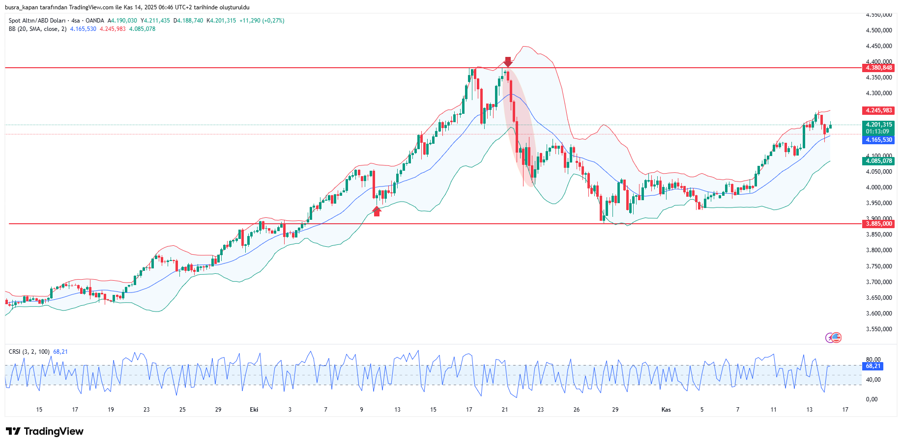 Ons altın haftanın son işlem gününde sabah 07.45'te 4 bin 201 dolar seviyesinde bulunuyor.