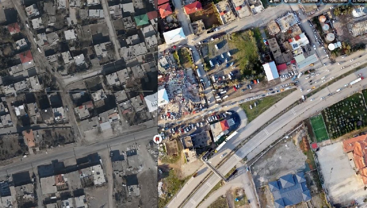 Depremde hasar gören 10 ilde karadan yapılan hasar tespit çalışmalarının yanı sıra anlık alınan uçak İHA, dron ve Göktürk uydu görüntüleriyle de dijital şehir ikizi görüntüleri karşılaştırılarak ön hasar tespit çalışmalarına katkı sağlanıyor.