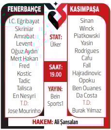 UEFA Avrupa Ligi'nde Anderlecht'i 3-0 deviren Fenerbahçe bugün Kasımpaşa’yı ağırlıyor. Saat 19.00'da Ülker Stadı'nda oynanacak mücadelede Ali Şansalan düdük çalacak.