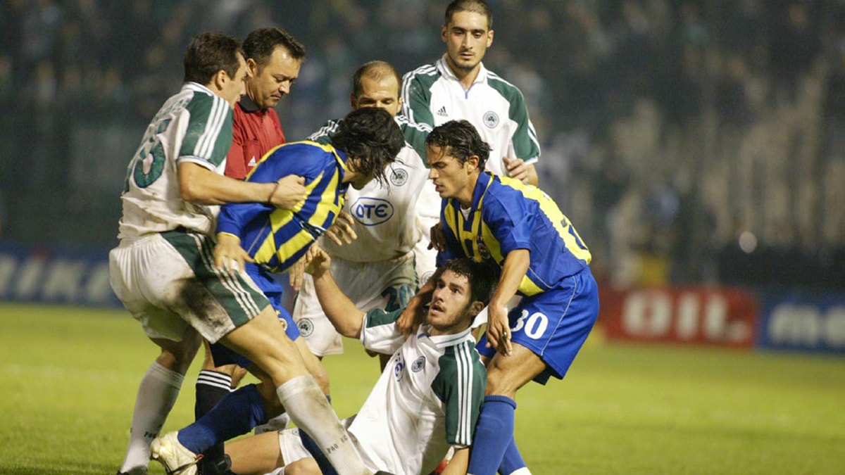 Fenerbahçe'nin Yunan takımlarıyla ilk mücadelesi 2002-2003 sezonunda gerçekleşmişti. UEFA Kupası 2. turunda Panathinaikos ile eşleşen Fenerbahçe, ilk maçta sahasında 1-1 berabere kalmış, ancak deplasmanda 4-1'lik ağır bir yenilgi alarak Avrupa'ya veda etmişti.