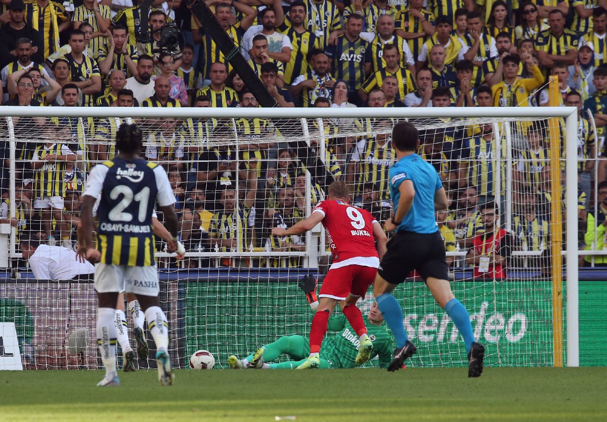 Fenerbahçe, ilk yarının uzatma dakikalarında beraberliği yakaladı. Ferdi Kadıoğlu'nun sol kanattan yaptığı ortaya ön direğe yakın noktada Serdar Aziz yükseldi ve topu arka direğe aşırdı. Arka direkte Edin Dzeko topa iyi yükseldi ve meşin yuvarlağı kalecinin solundan ağlarla buluşturdu.