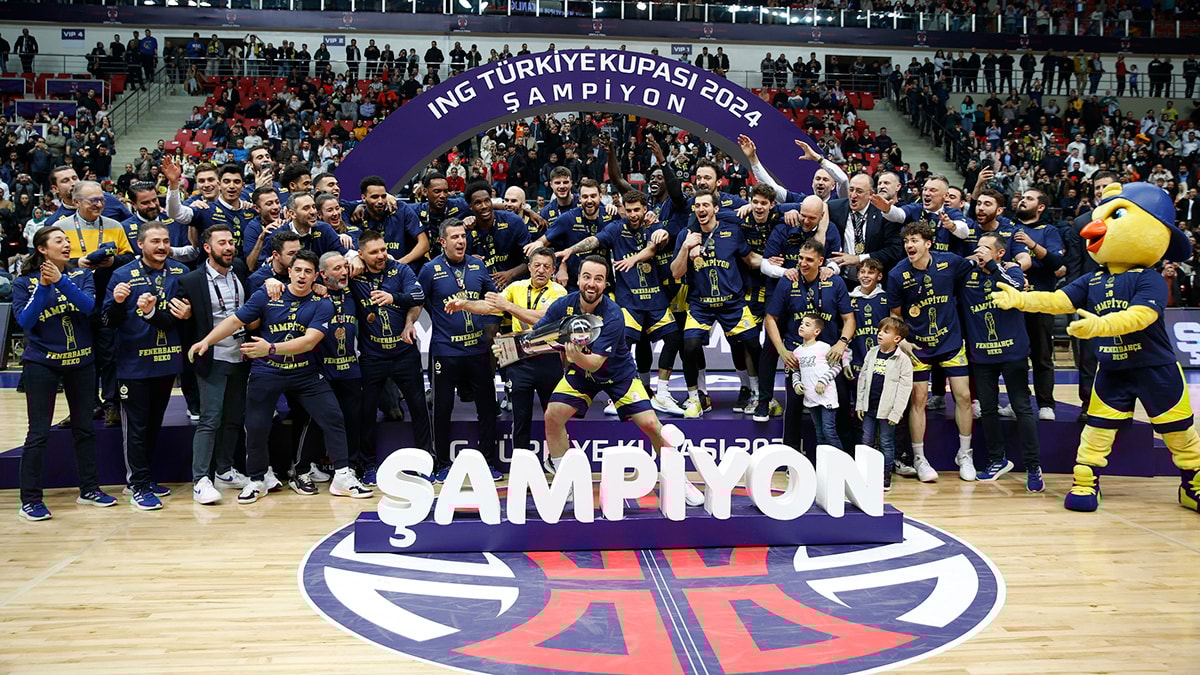 Fenerbahçe Beko, Anadolu Efes'i 80-67 mağlup ederek ING Türkiye Kupası'nı kazandı ve ödül töreninde kupayı kucakladı.
