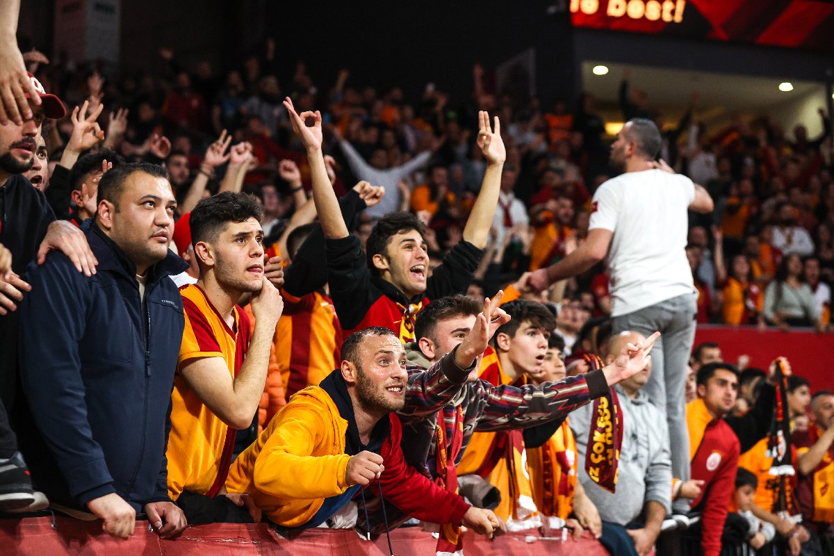 Karşılaşmaya yoğun ilgi gösteren Galatasaraylı taraftarlar, salonu tamamen doldurdu.