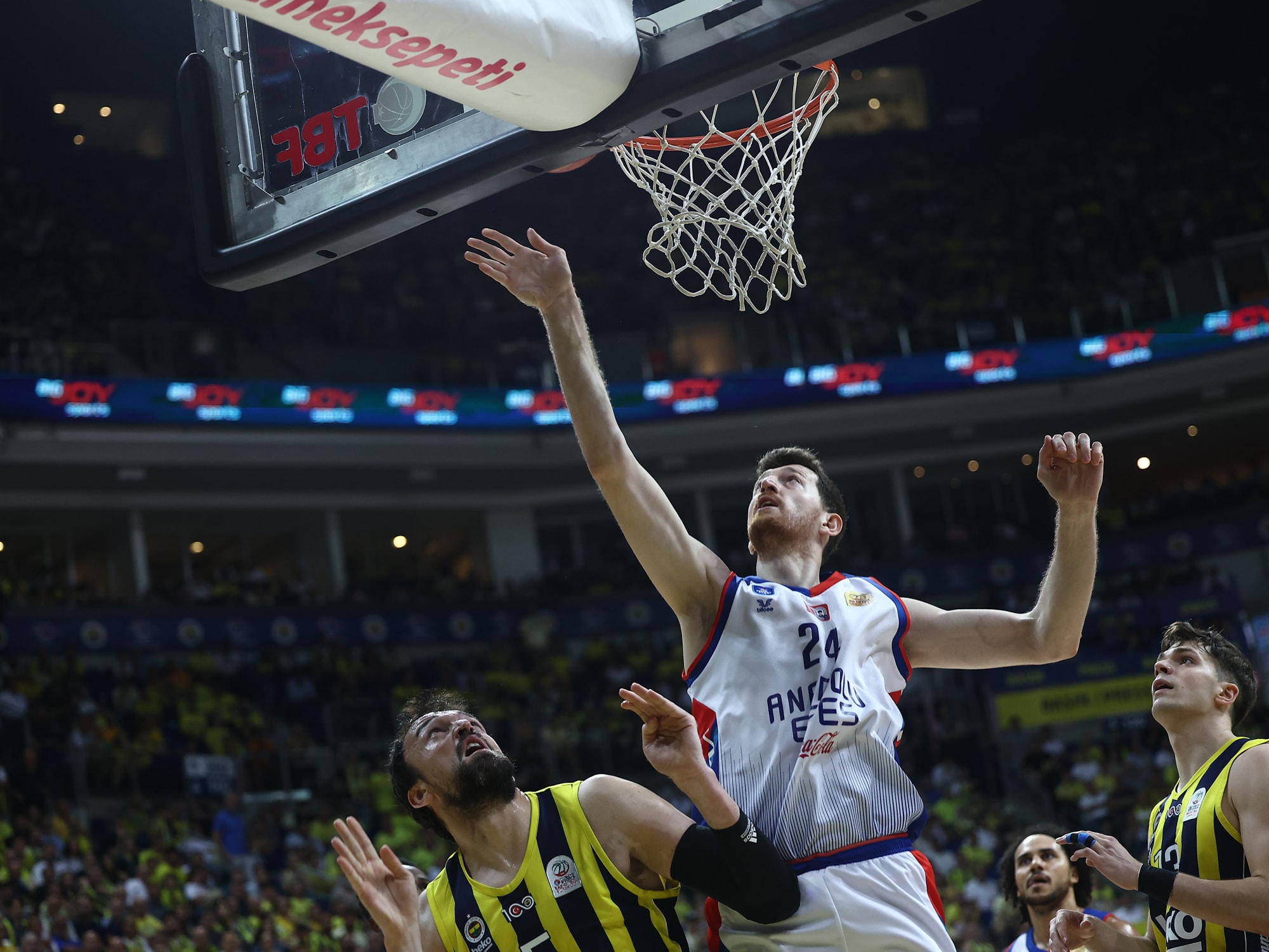 Anadolu Efes, Türkiye Sigorta Basketbol Süper Ligi final serisi 3’üncü maçında Fenerbahçe Beko’yu deplasmanda son saniyede bulduğu sayıyla 82-81 mağlup ederek serideki ilk galibiyetini aldı ve durumu 2-1’e getirdi.