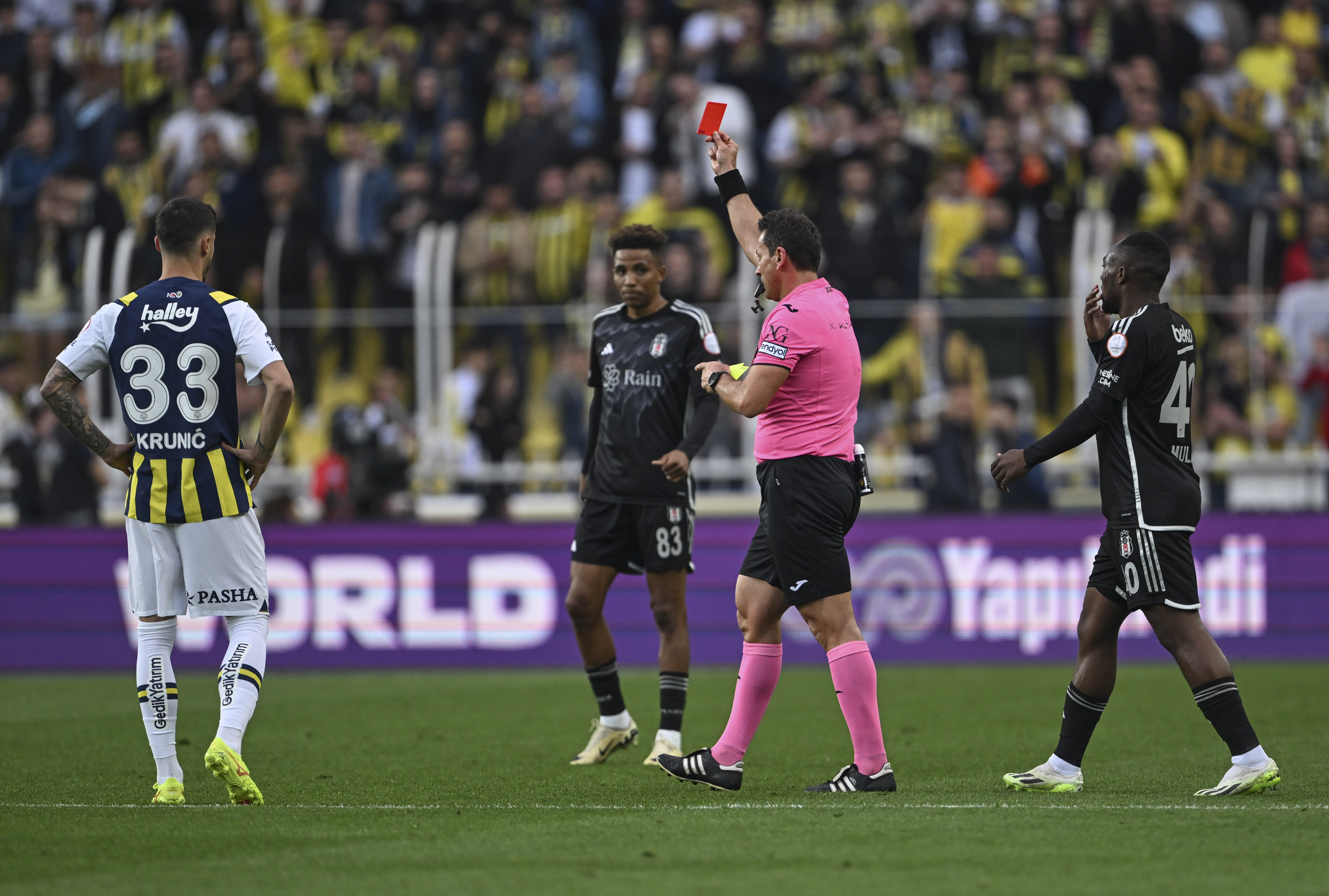 Trendyol Süper Lig'în 34. haftasında Kadıköy'de oynanan Fenerbahçe-Beşiktaş derbisinin 25. dakikasında Al-Musrati, kırmızı kart görerek oyun dışı kaldı.