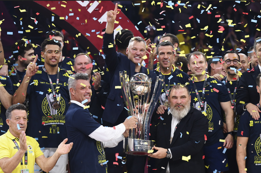 Sinan Erdem Spor Salonu'nda oynanan müsabakanın ardından gerçekleştirilen kupa töreniyle 8. Cumhurbaşkanlığı Kupası'nı müzesine götüren Fenerbahçe'de başkan seçilen Sadettin Saran, soyunma odasına giderek takımı ve teknik ekibi tebrik etti.