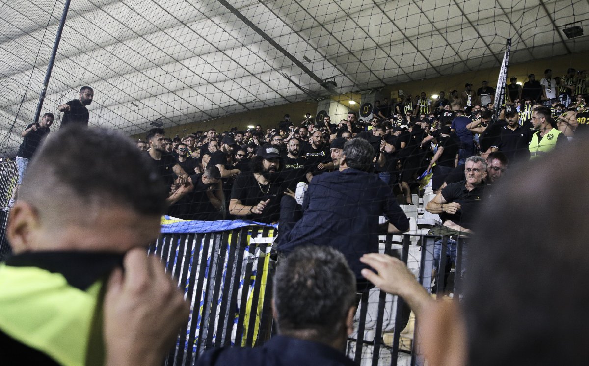 İki takım taraftarları arasındaki olay bir anda alevlendi ve maç durdu. Sloven polisler karışıklığın çıktığı yere hareketlenirken, Fenerbahçeli futbolcular da sarı lacivertli taraftarları sakinleştirmeye çalıştı.