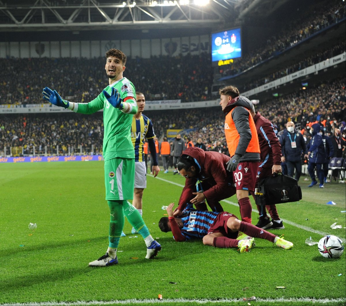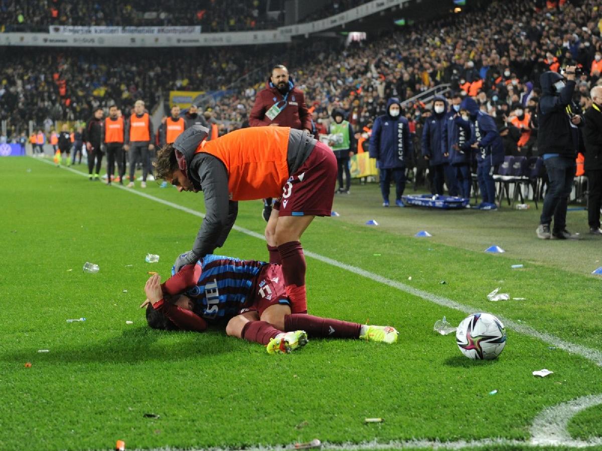 Fenerbahçe-Trabzonspor karşılaşması yüksek gerilimli bir ortamda oynanırken, bordo mavili ekibin yıldızı Anastasios Bakasetas kendisine isabet eden yabancı maddeler nedeniyle yerde kaldı.