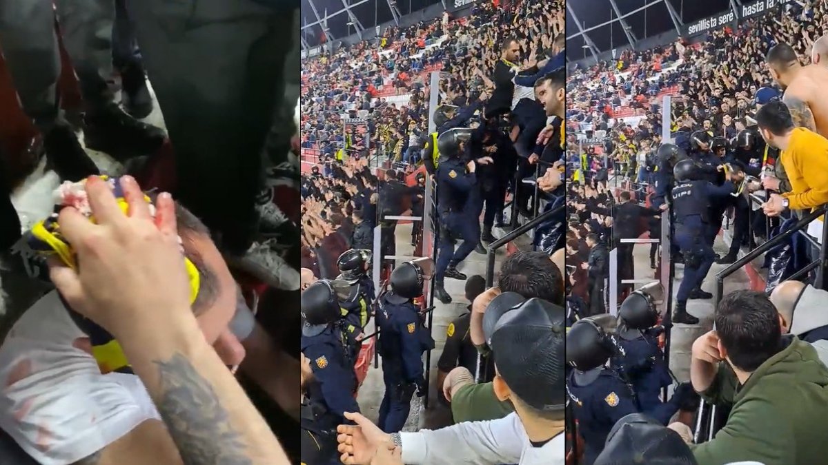Sevilla deplasmanında Fenerbahçe'yi desteklemek için tribünleri dolduran sarı lacivertli taraftarlar, İspanyol polisinin saldırısına uğradı.