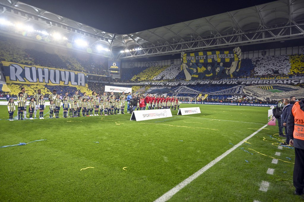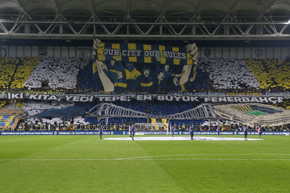 Fenerbahçeli taraftarlar, derbi maç öncesinde koreografi gösterisinde bulundu. Sarı-lacivertliler, Okul Açık Tribünü'nde üzerinde "Our City, Our Rules" yazan bir koreografi açtı.