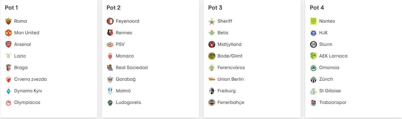 - E Grubu: Manchester United, Real Sociedad, Sheriff Tiraspol, Omonoia