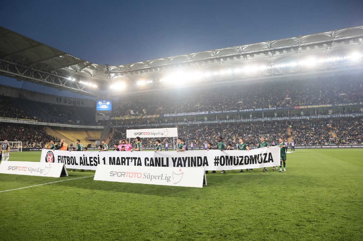 Müsabaka öncesinde iki takım da sahaya siyah tişörtlerle çıkarken, Fenerbahçeli oyuncuların tişörtleri üstünde "Yaralarımızı Birlikte Saracağız" ve "Geçmiş Olsun Türkiyem" ifadeleri yer aldı.