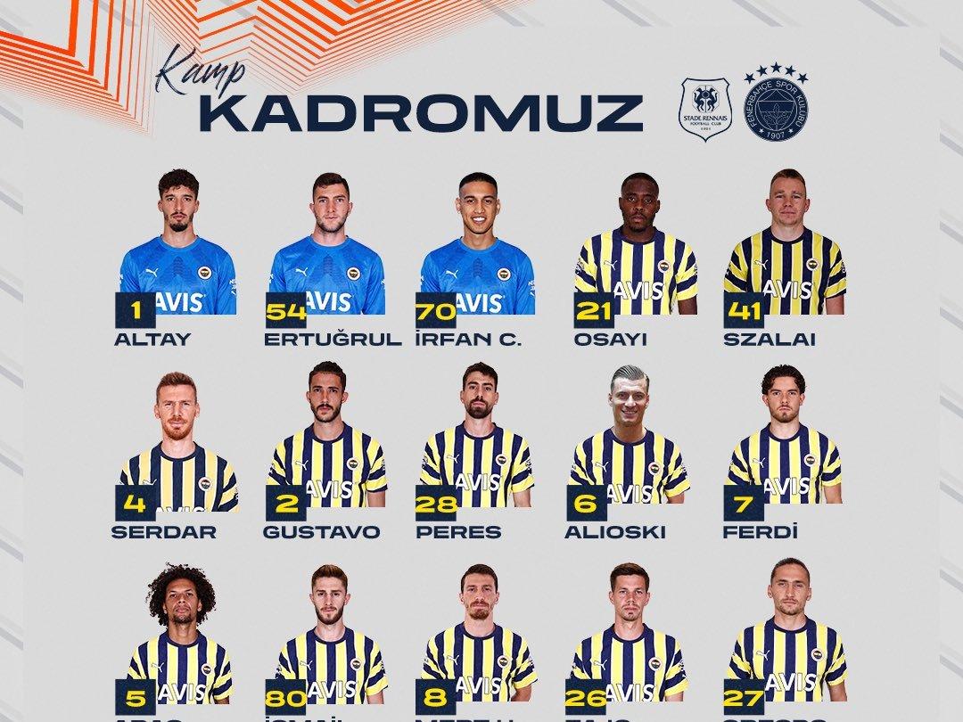 Sarı-lacivertli kulüpten yapılan açıklamaya göre, Rennes müsabakasının kamp kadrosunda yer alan futbolcular şöyle: