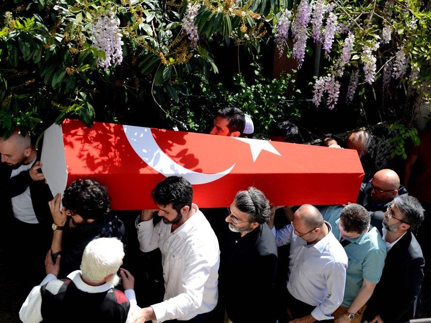 "M.Kemal’e zerre muhabbeti olan cenazeme gelmesin..." diyen Atatürk ve Cumhuriyet düşmanı Kadir Mısıroğlu'nun tabutu, yakınları tarafından Türk Bayrağı ile örtüldü.